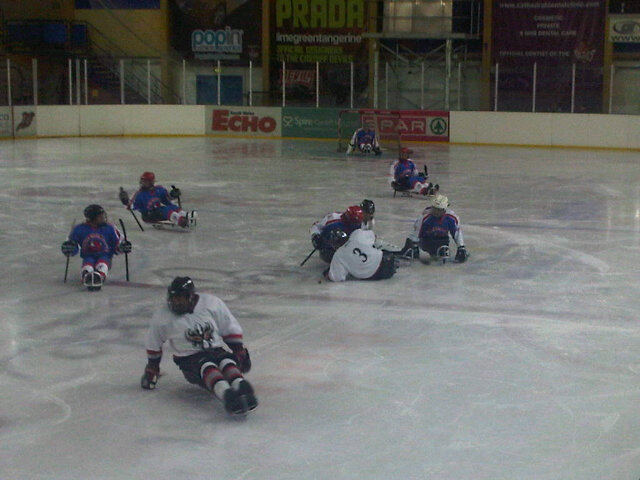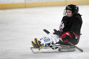 Sledge Hockey is a variant of ice hockey and can be played on and off ice, using sledges to allow participants to move about the rink at high speeds hitting a puck travelling at speeds of up to 100kph. Players sit in sledges, propelling themselves with sticks adapted to allow propulsion in a manner similar to skiing. As players are strapped to a sledge all players have the same restrictions, regardless of whether or not the player has a disability.